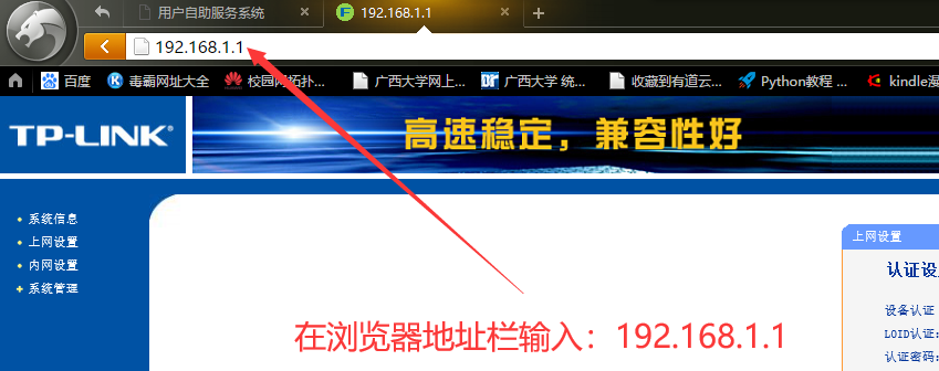 10、在浏览器输入刚才记录的ip地址,比如这里输入刚才看到的192.168.1.1(注意,不同的路由此ip可能不同,需要在第8步确认)