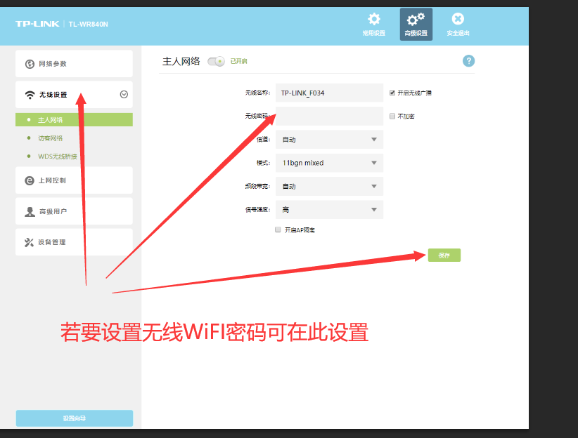 14、若要设置无线Wifi名与无线Wifi密码可在“无线设置”中设置,如下图所示。