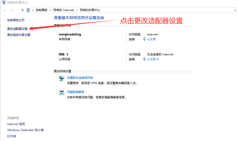 6、在弹出的窗口中点击“更改适配器设置”