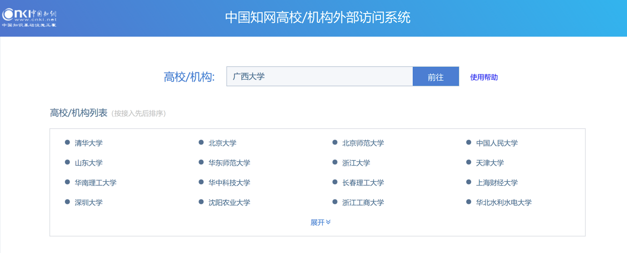 4.在资源首页点击“登录”或“通过机构登录”,外文数据库通常为“Access Through Institution”,选择beats365亚洲版或“Guangxi University”。