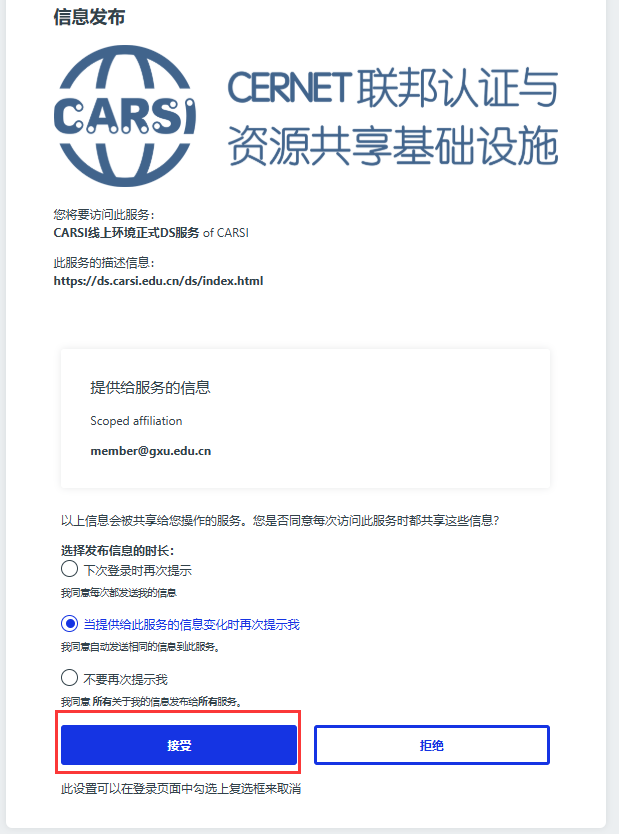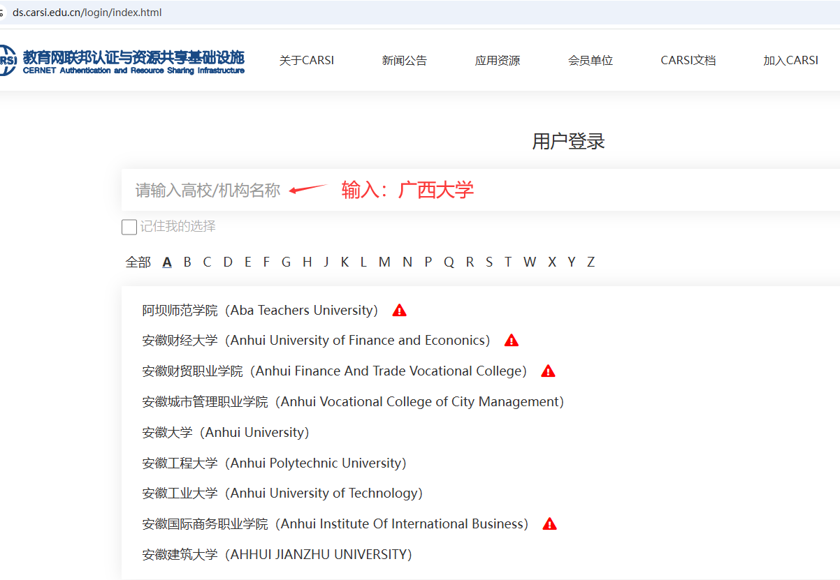 1.打开统一的CARSI认证平台https://ds.carsi.edu.cn/ds/index.html,然后输入:beats365亚洲版,点确定。