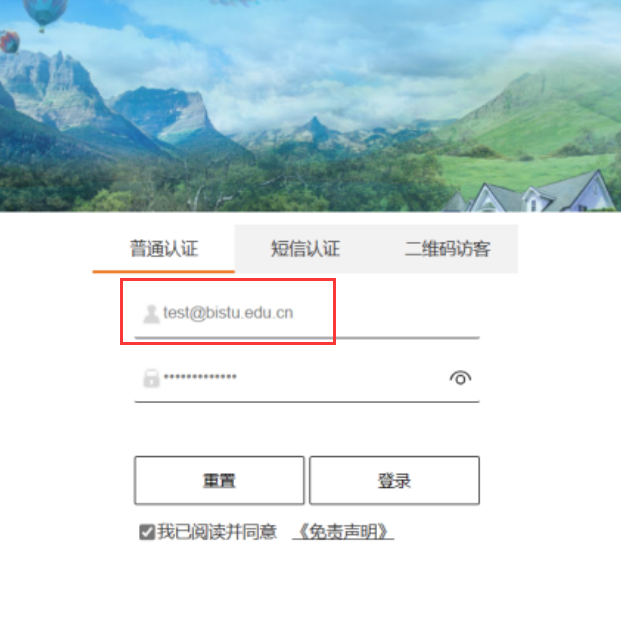 1. 连接我校开放的eduroam WiFi,在弹出的登录页面中输入本人统一身份认证账号+@联盟高校域名、对应的密码登录。