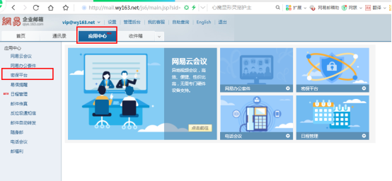 第一步:登录网易企业邮箱账号,选择【应用中心】点击【密保平台】