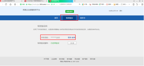 第二步:进入密保平台界面,选择【短信验证】,根据情况选择【绑定】【替换】【解绑】