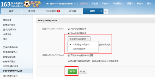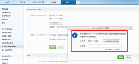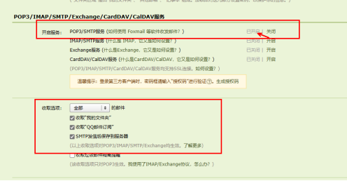 邮件代收需要开启:POP3/SMTP服务