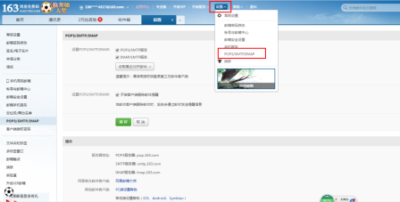 4、选择《设置》-《POP3/SMTP/IMAP》