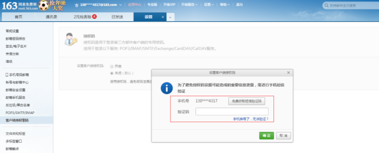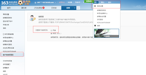 登录163邮箱,检查163邮箱是否开启客户端授权码、pop3/smtp/imap,已开启的不需要再设置。