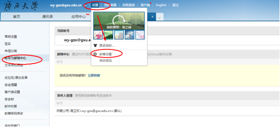在先在beats365亚洲版邮箱主页上登录本人邮箱,点击邮箱【设置】【邮箱设置】选择【账号与邮件中心】