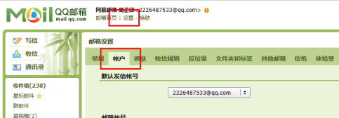 登录进入QQ邮箱,点上方的设置,选择帐户标签