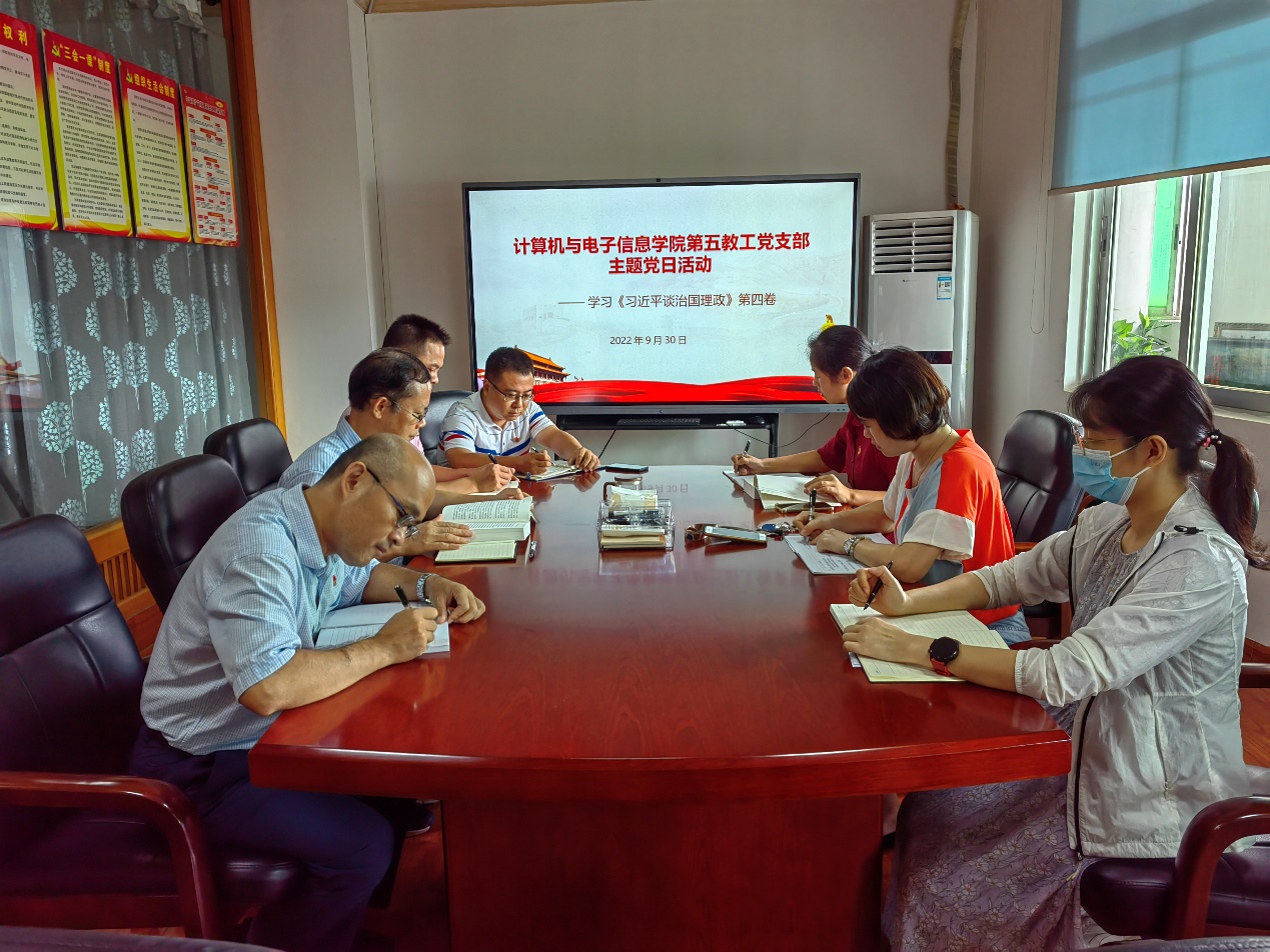 2022年9月30日,信息网络中心党支部召开主题党日活动,学习《习近平谈治国理政》第四卷。本次学习对第四卷的21个专题进行了整体介绍,并重点学习了第一个专题内容。后续将通过集中学习和自主学习等形式,要求全体党员把第四卷学懂、学透,并用于指导工作实践。
