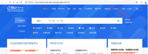 使用外网(非校园网)的我校在职教职工、在校全日制本科生和研究生,需要访问校内部分资源(如图书馆所购买的电子资源等)以及其他校内应用系统时,可启用VPN(虚拟专用网)服务。在浏览器的地址栏中输入https://vpn.gxu.edu.cn/ ,并使用VPN用户名、密码、短信验证码进行登录【温馨提示:在职教职工、在校全日制本科生和研究生请使用统一身份认证账号(工号/学号)和密码登录,如忘记密码请查看/info/1335/2703.htm,其他用户请使用单独申请的VPN账号登录,若账号被锁定,10分钟后自动解锁】。若还未有VPN账号,请点击/info/1362/2826.htm 查看其他特殊VPN账号的开户相关事宜。