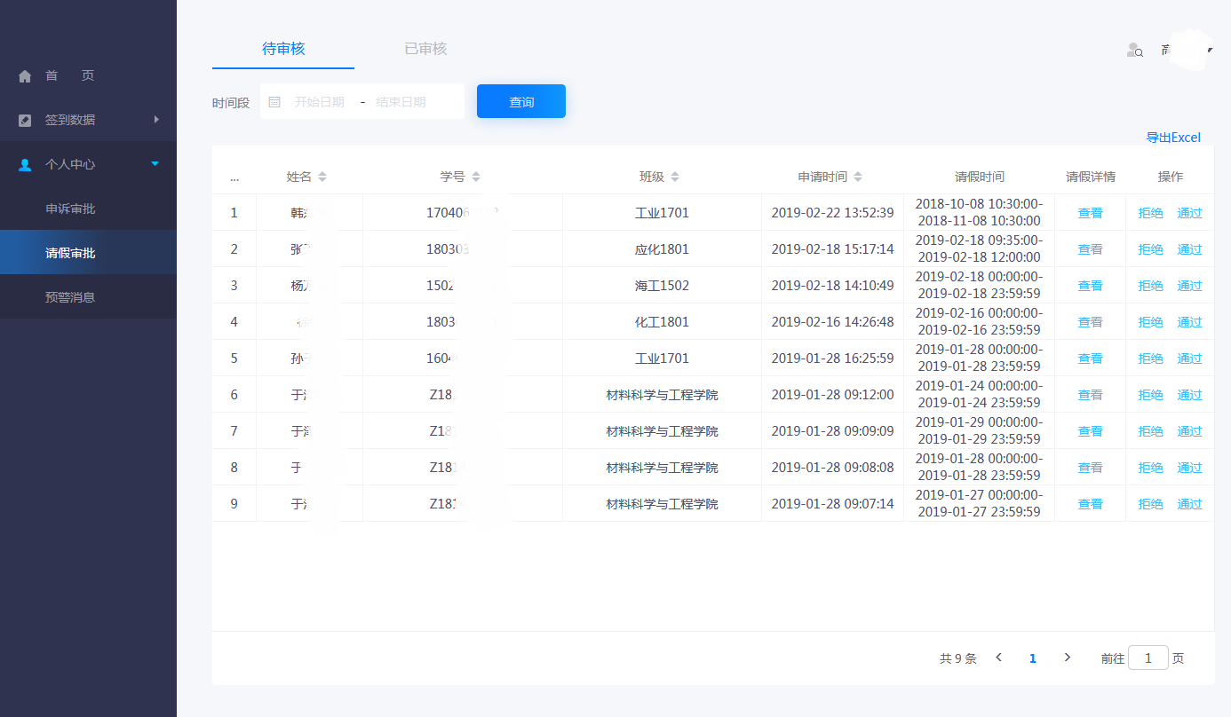 请假审批:对学生的请假进行审批