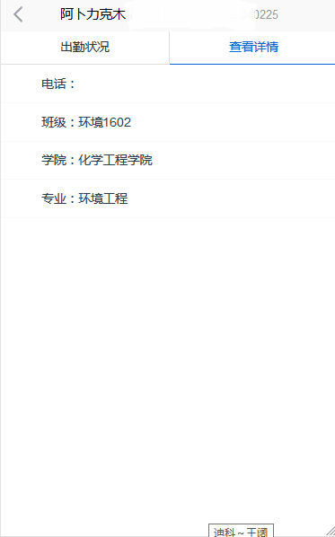 再点击某位学生,可查看学生的以往的缺勤情况及个人信息,缺勤的课程优先显示