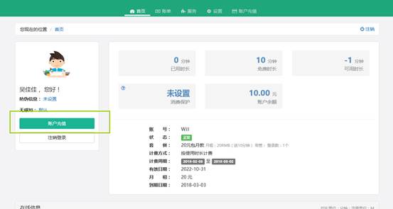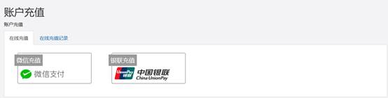 2)如果选中点击自服务首页“设置”页旁边的“账号充值”会跳转如下: