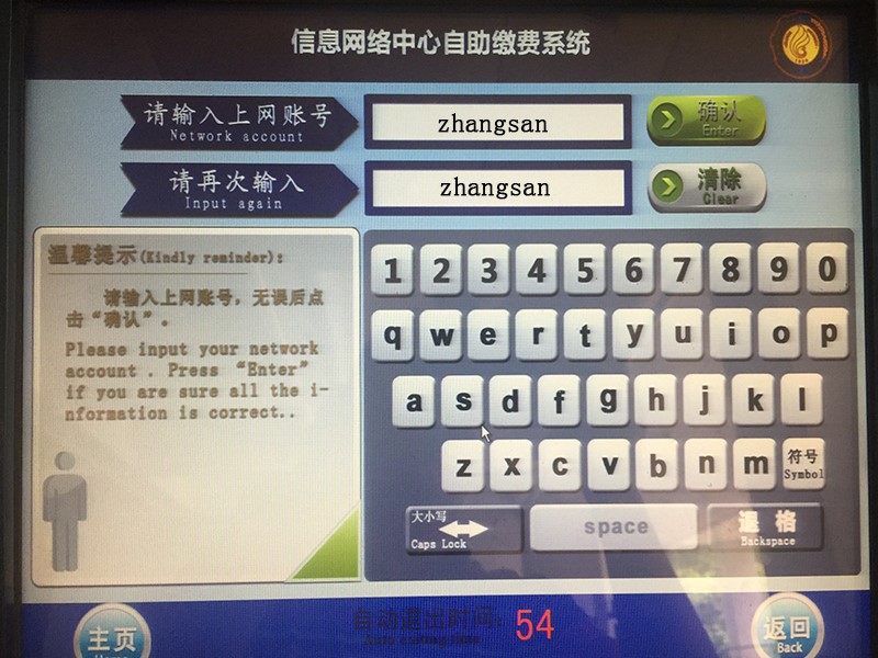 A-3 在网络中心人员的提示下输入银行卡密码;