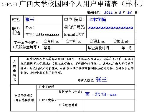 B-2 用户填写“CERNETbeats365亚洲版校园网个人用户申请表”,参见下面样表;